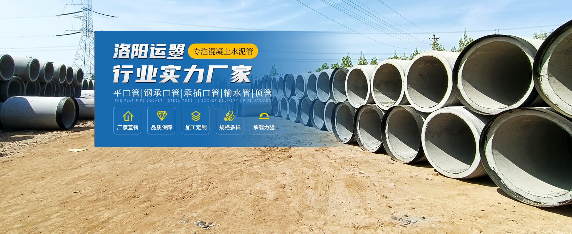- 洛陽運曌建筑材料有限公司專于從事水泥制品開發(fā)、制作、生產、銷售、工程服務為一體的綜合性企業(yè)。主要生產鋼筋混凝土排水管、鋼承口頂管、承插管、平口管、雨污井蓋、路沿石、水泥預制板、仿木圍欄護欄系列、畜牧系列等混凝土水泥預制品。 我公司生產的鋼筋混凝土排水管是依據執(zhí)行標準GB/T11836-2023生產檢驗、擁有三條懸輥工藝生產線;型號300-3000;年生產能力達30000米左右,質量是企業(yè)之本.........了解更多>>